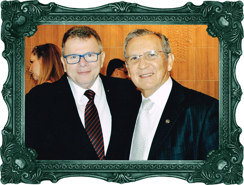 Imortal Juarez Leitão, biógrafo de Olga Barroso, e coronel Affonso Taboza, da reserva, mas sempre atento ao seguimento brasileiro.