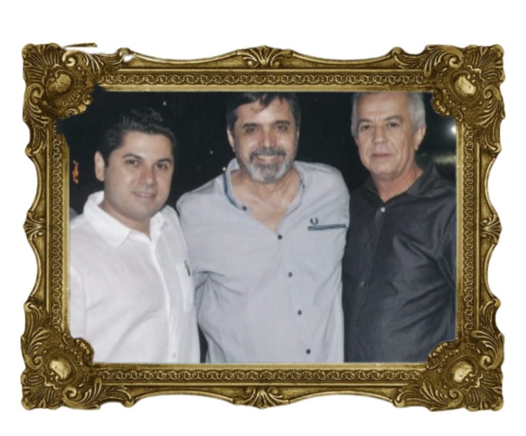 Comodoro do late, Pompeuzinho Vasconcelos, e Clóvis Rolim, ladeando Totonho Laprovítera.