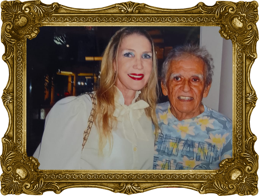 Com Marjorie Marshall, filha de Regina, entre as mesas do Náutico. (By Evando)