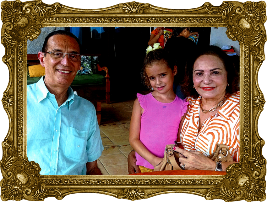 Ilustradas 12.06.2024 Aristófanes e Vânia Canamary, com neta Lara Gurgel, que vem a ser tetraneta de dona Melinha Frota.