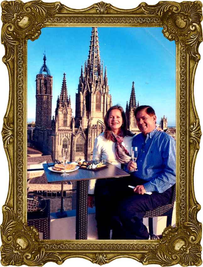 Ilustradas 14.08.2024 Bel e Sá Júnior, extraordinários companheiros de viagem, me parecendo defronte a Catedral de Barcelona.