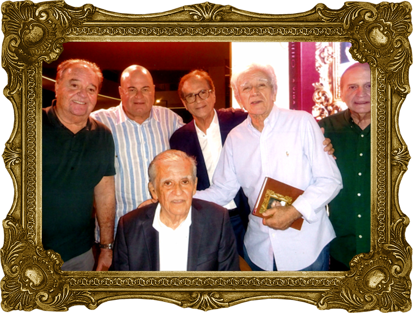 O autor e seus amigos Chico Aragão, Luciano Cavalcante, Beto Studart, que comandou a belíssima noite, Mino e Carlos Augusto Moraes.