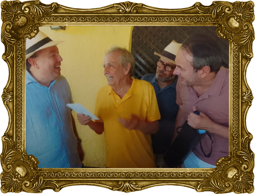 Ilustradas 24.12.2024 E aqui estou eu, no monumental almoço, recebendo a Sociedade dos Amigos do Vinho, no momento em que Weiber Xavier me passa um cartão da Sociedade, testemunhado por Arlen Medina e Jorge Brandão.