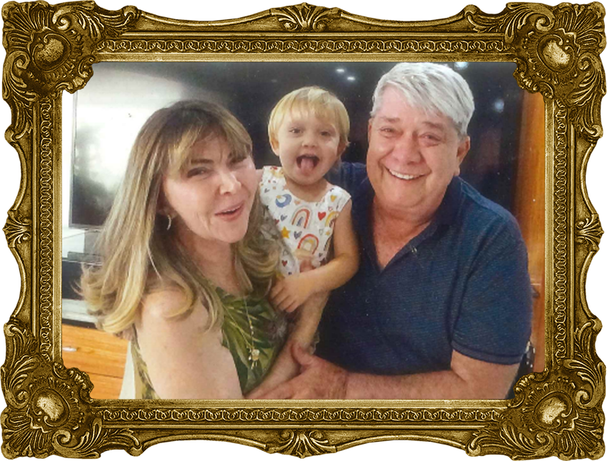 Emília e Eduardo Patrício apresentando a mascote da família.