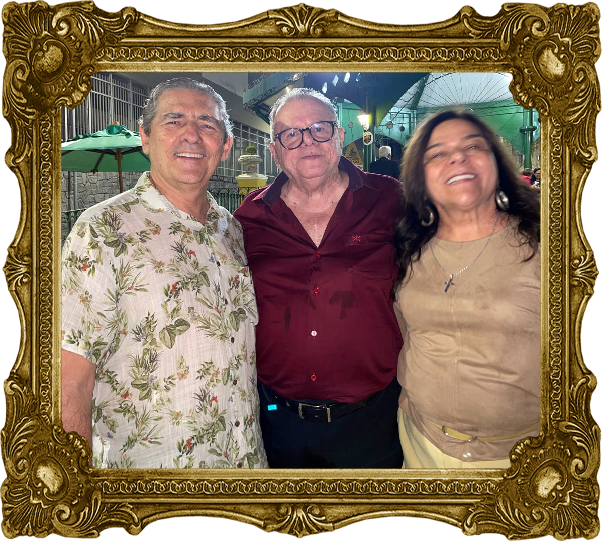 Ilustradas 01.04.2026 Presidente e primeira-dama da Academia de Cinema, Régis Frota e Aurila, ladeando imortal Juarez Leitão.