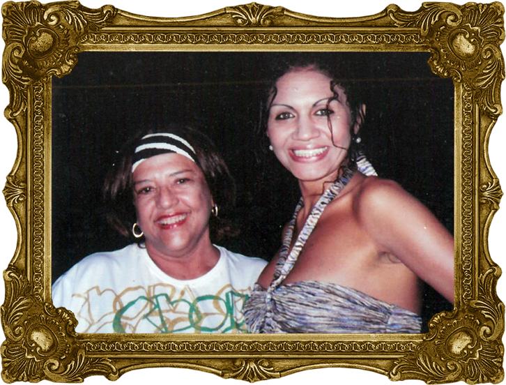 Zulmira Porto, Rainha do Pasteio Cumbucano, com cinco casas, e nora Leide. |