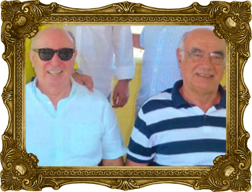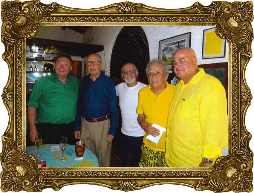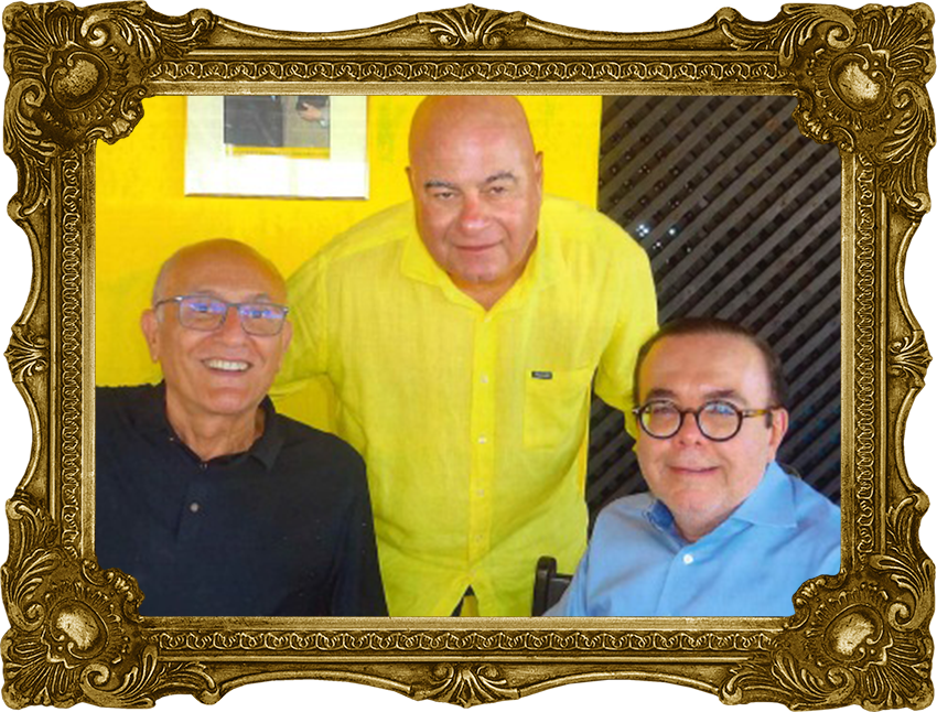 Aqui, vemos Alessandro Belchior, principal coordenador da gigantesca exposição pictórica, com Rodrigues Júnior e Luciano Cavalcante, no majestoso Almoço Jubileu do repórter.
